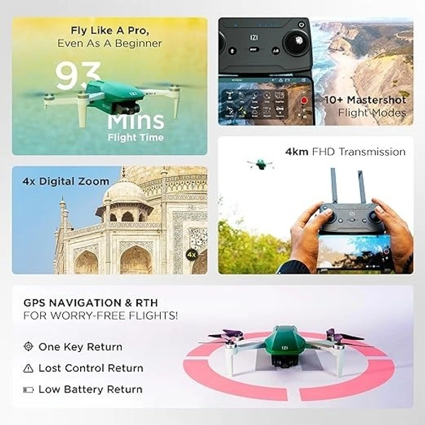 - Nano 4K Drone: Redefining Indian Aerial Exploration at a mere 249g, leading in compactness and quality with cutting-edge tech for top performance. Boost your adventures with the FLY MORE COMBO, with a tri-charging hub for quick charging 3x smart batteries, providing extended power and uninterrupted flight time